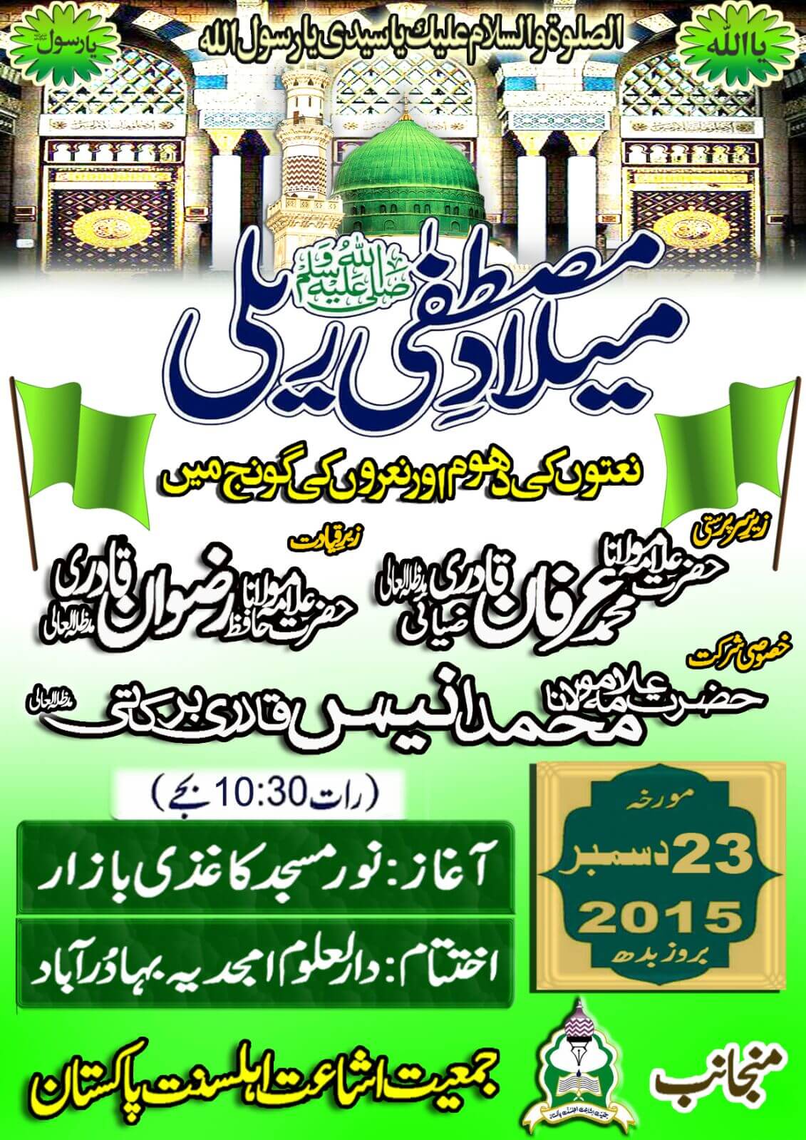 مورخہ ۲۳ دسمبر ۲۰۱۵ بروز بدھ رات ۱۰:۳۰ بجے آغاز:نور مسجد کاغذی بازار اختتام :دارالعلوم امجدیہ ،بہادرآباد،کراچی پاکستان...