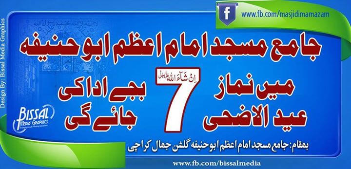 جامع مسجد امامِ اعظم ابو حنیفہ میں نمازِ عید الاضحیٰ ان شاءاللہ عزوجل ۷ بجے اداکی جائیگی بمقام:جامع مسجد امامِ اعظم ابو حنیفہ گلشنِ جمال کراچی پاکستان ...