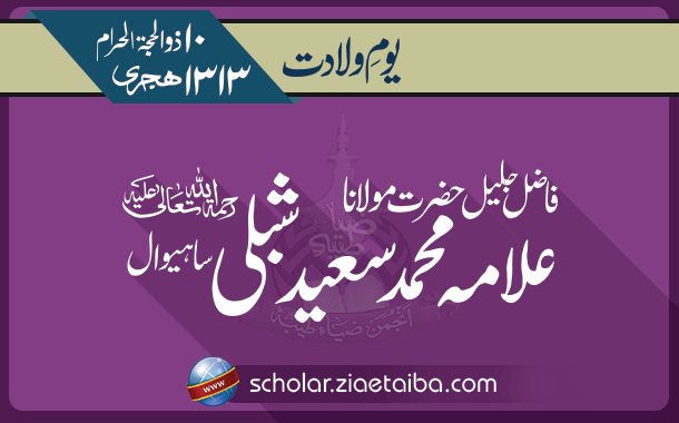 فاضل جلیل حضرت مولانا علامہ محمد سعید شبلی ساہیوال علیہ الرحمۃ استاذ العلماء مولانا سعید صاحب شبلی بن مولانا قائم الدین ہندوستان کی مشہور ریاست فرید کوٹ میں دس ذوالحجۃ المبارکہ ۱۳۱۳ھ، ۱۸۹۶ء کو ایک علم دوست اور ممتاز ارائیں خاندان میں پیدا ہوئے۔ آپ تقریباً ساڑھے تین سال کے ہوئے ہوں گے کہ والدہ ماجدہ انتقال فرما گئیں۔ اس لیے دادی صاحبہ نے پرورش شروع کی اور اپنی ایک عابدہ، زاہدہ ہجمولی غوث بی بی کے پاس قرآن پاک کی تعلیم کے لیے بٹھای...